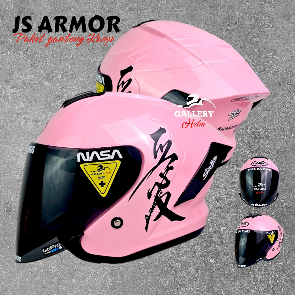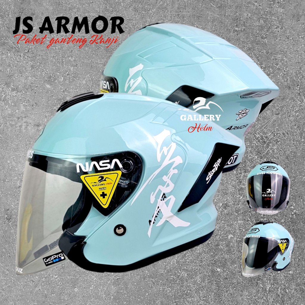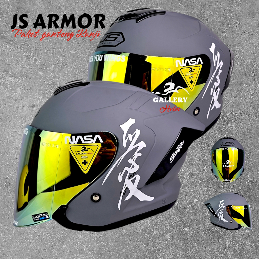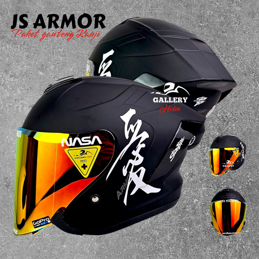 Helm js Armor Carbon Paket Ganteng Kanji | Visor Iridium - Half Face SNI