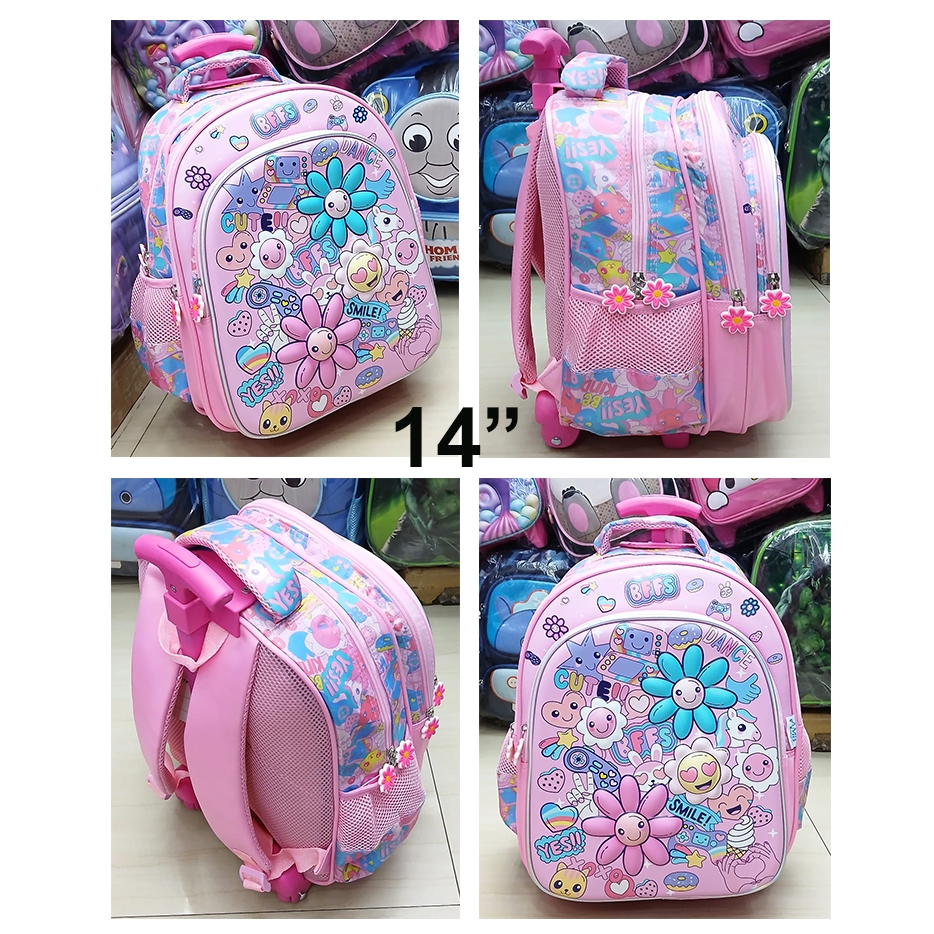 Tas Trolley Roda Dorong Anak Tk Perempuan Motif Kuda Pony Lilac Glossy Timbul 3Res