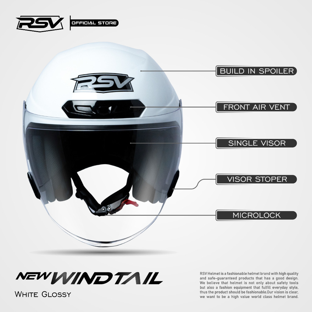[ORIGINAL RSV] Helm RSV New Windtail White Glossy - Helm Half Face SNI Single Visor (FLUX HELMETS)