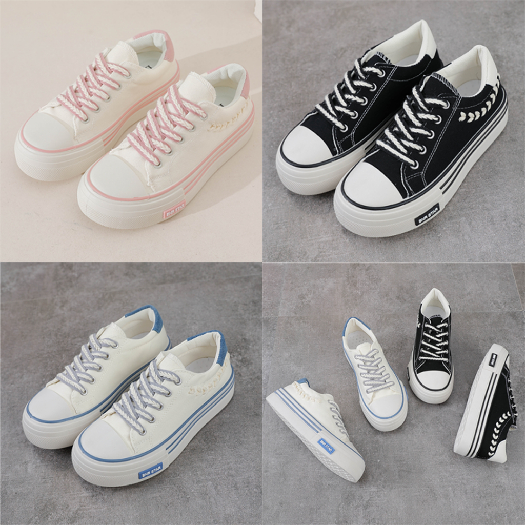 Luxus Mirai Sepatu Sneakers Wanita Import Korea Canvas Tali Quality - Lxcf02