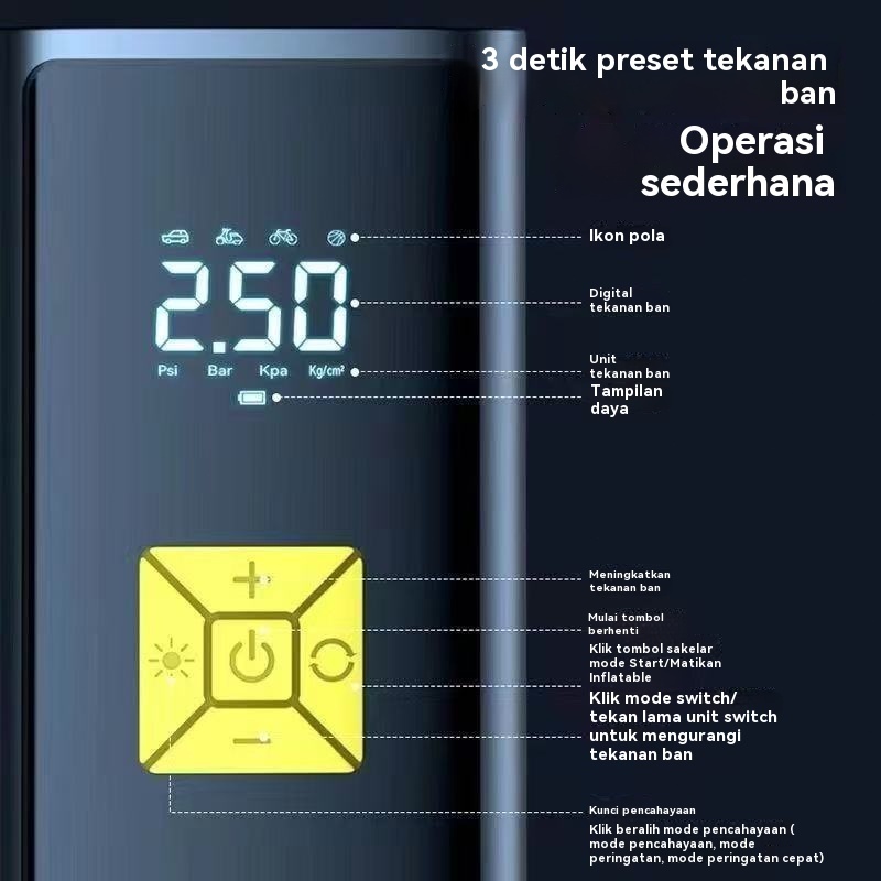 Ready Stock Pompa Ban Mobil Elektrik - Portabel Nirkabel dengan Tampilan Cerdas, Deteksi Tekanan & Pengembangan Ban Otom