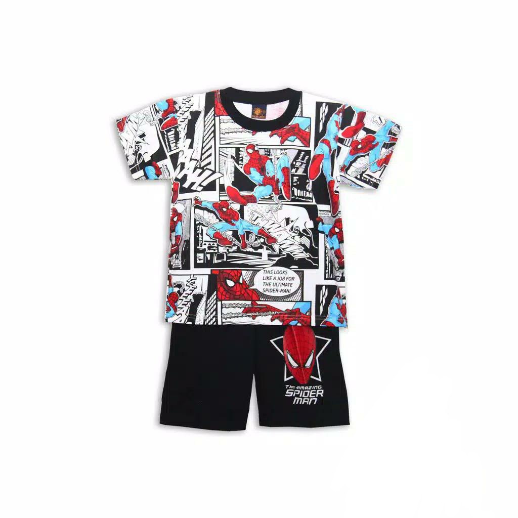 Setelan Pendek Hym Spidermen/ Baju Spider /Stelan Harian Anak
