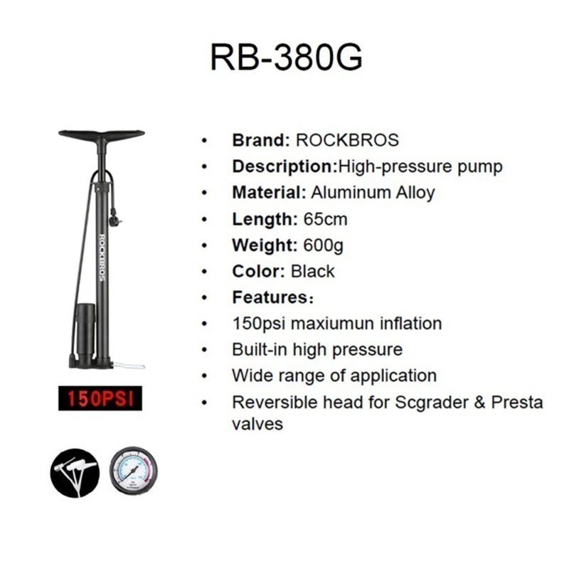 ROCKBROS Pompa Angin Ban Sepeda Motor Bola Air Pump 380G 160 Psi Mtb Seli