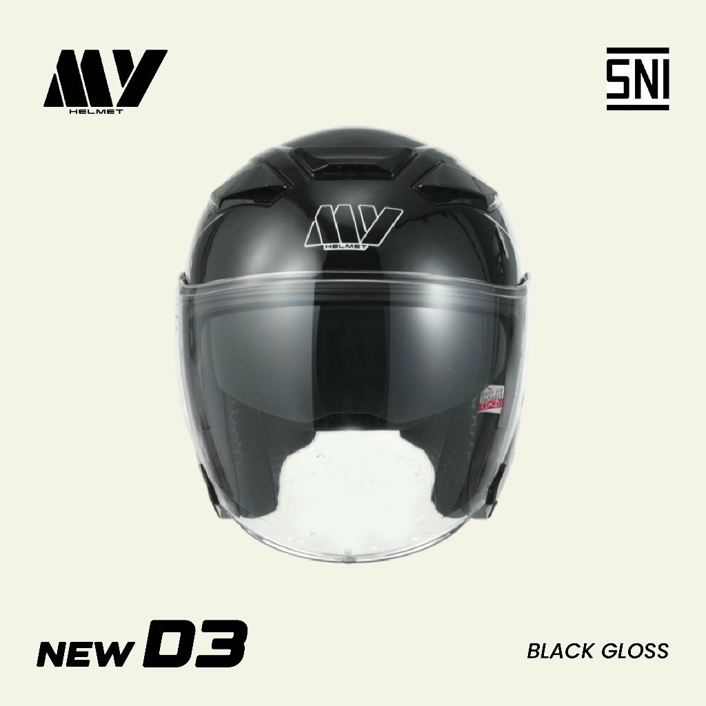 Helm Halface MY D3 Black Gloosy Visor Clear