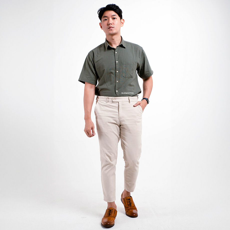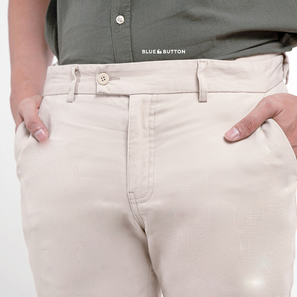 BLUEBUTTON Celana Chino Ankle Pants Slim Fit Cream