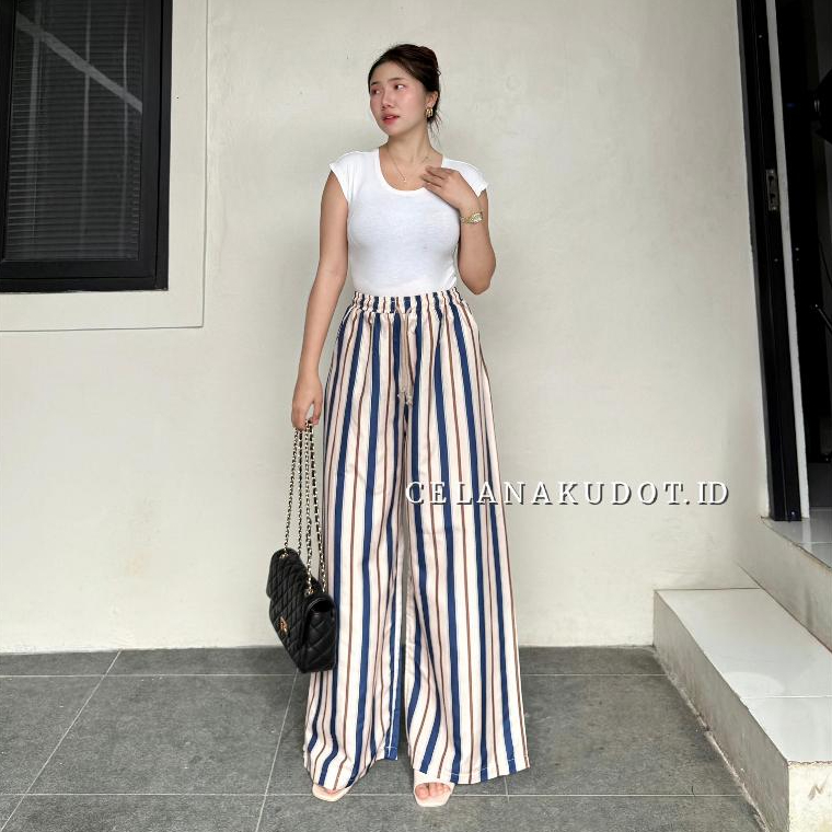 Celanakudot - Everyday Pants - Strip Pants - Salur Motif Besar - Celana Panjang Wanita Baggy Kantor Kuliah - Kulot Pinstripe - Celana Formal Casual Wanita Loose Basic