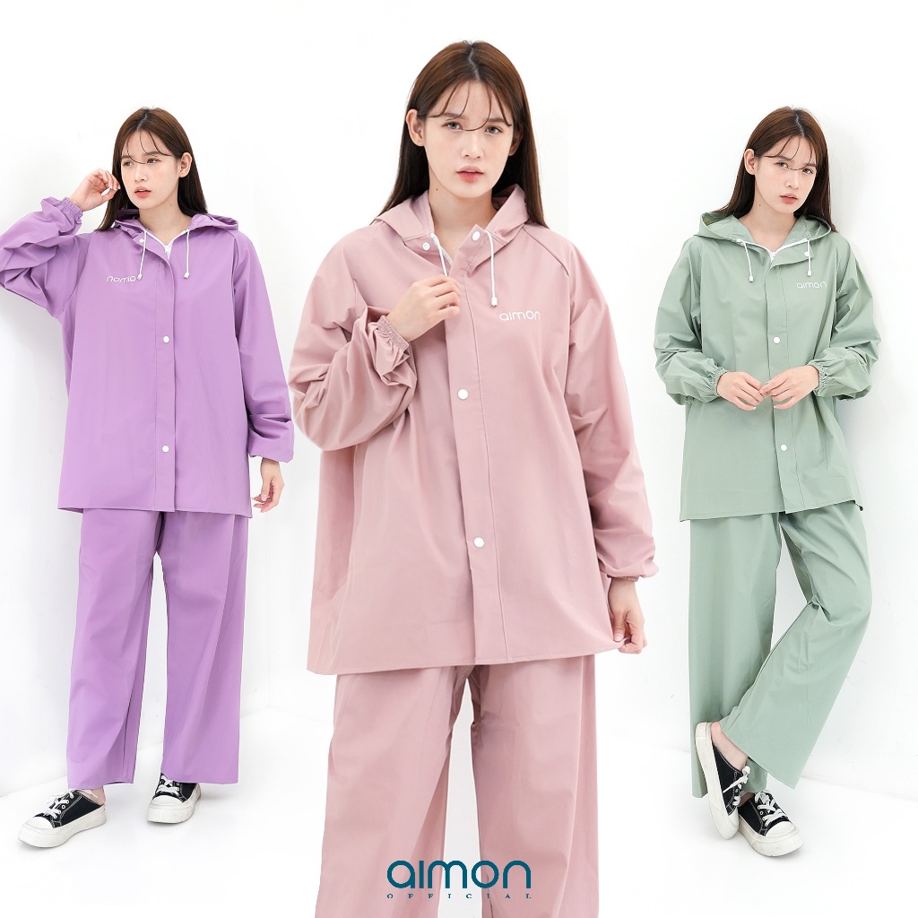 Aimon Jas Hujan Pria Wanita Warna Pastel Setelan Jaket Celana