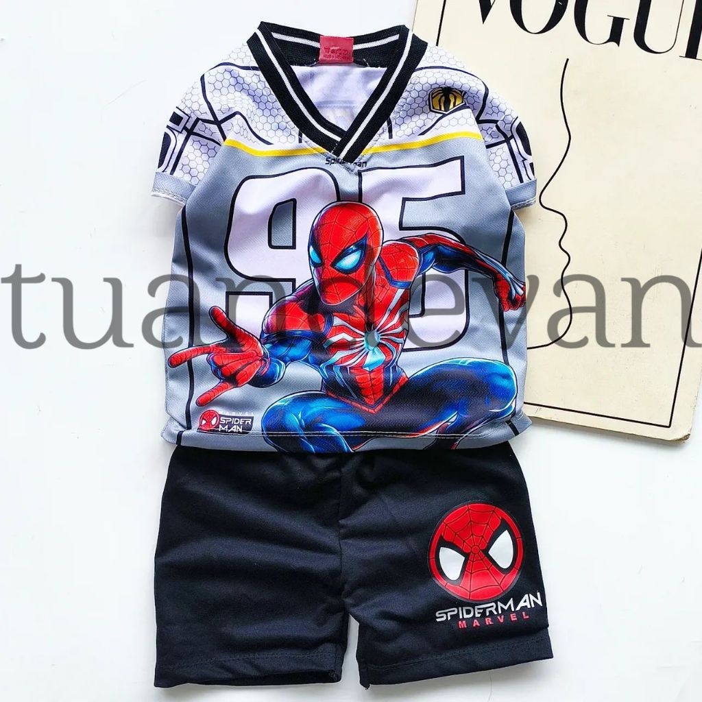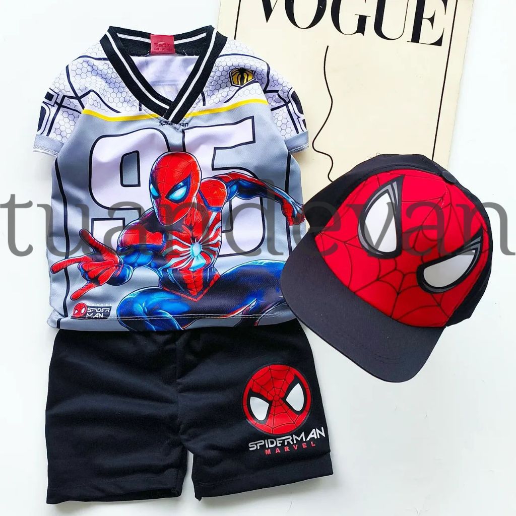 Baju Jersey Spiderman Premium Anak Laki Laki Murah Bahan Bagus Setelan Super Hero Keren Bisa Pakai Topi Untuk Umur 1-10