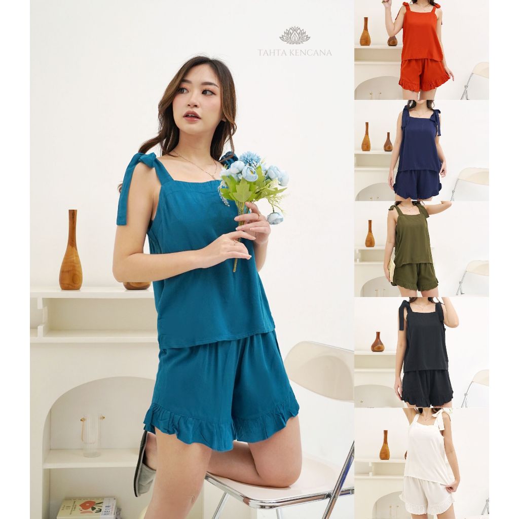 Tahta Kencana - issa One Set Celana Pendek l Setelan Baju Tidur Wanita Piyama l Sleepwear Lengan Buntung Sleveless Bahan