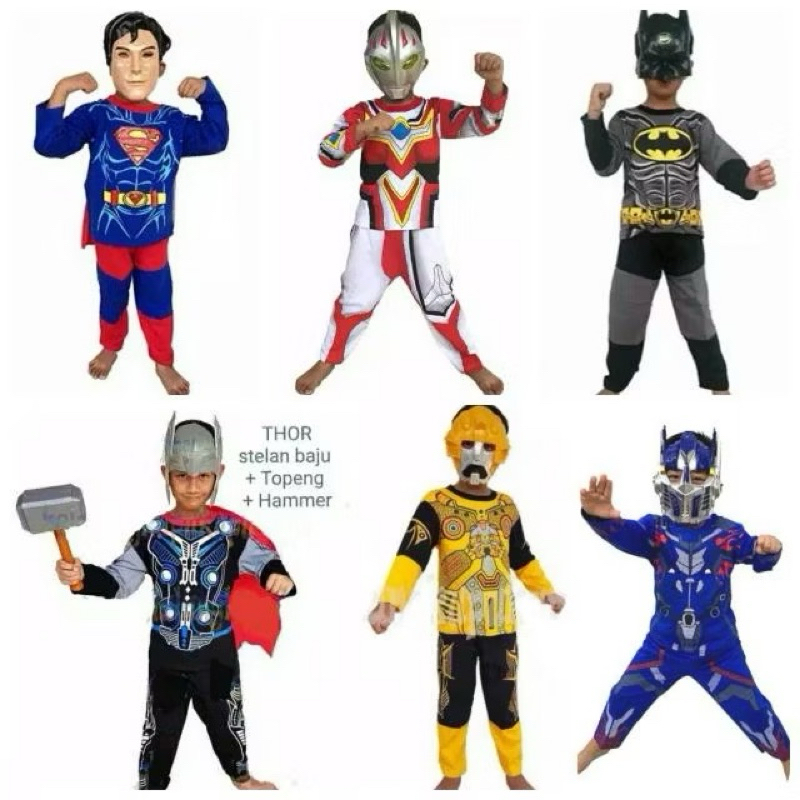 Gratis Topeng Setelan Baju Anak Laki Laki 1-9 Tahun Kostum Panjang Superhero
