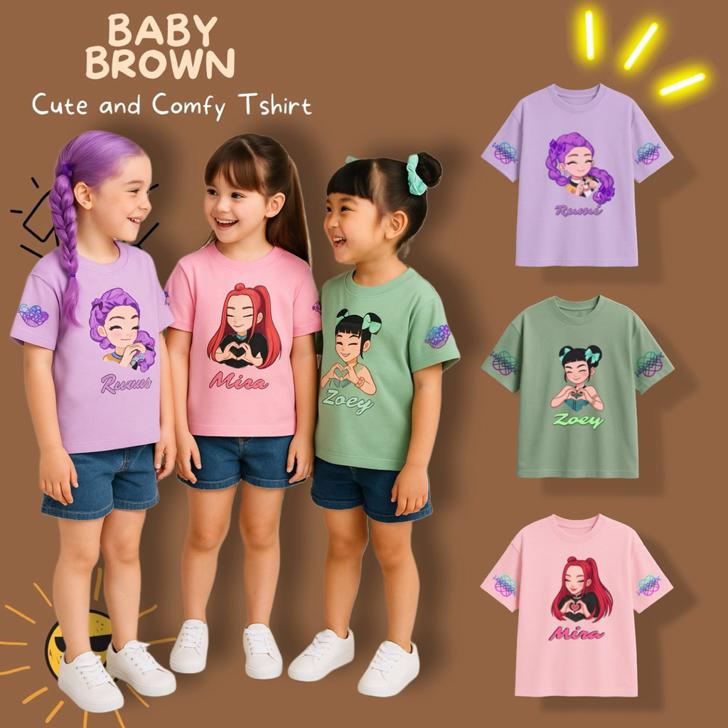 Kaos Anak Premium Baju Anak Distro Unisex 1-10Tahun Tshirt 24S Combed Mix Motif Personel Huntrix Kpop Demon