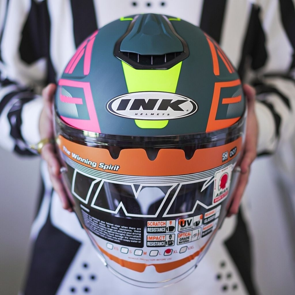 INK TERRA 2 MOTIF #2 ORIGINAL FREE SPOILER | DOUBLE VISOR HELM HALF FACE INK TERRA MOTIF ORANGE DOFF PINK FUXIA GREEN EMERALD ORI SNI