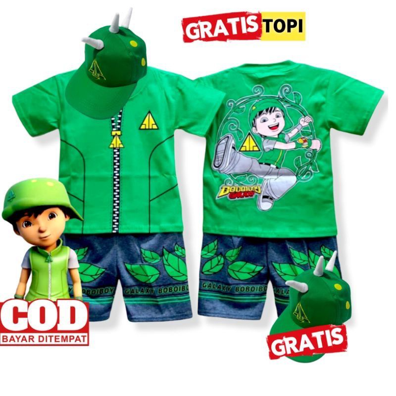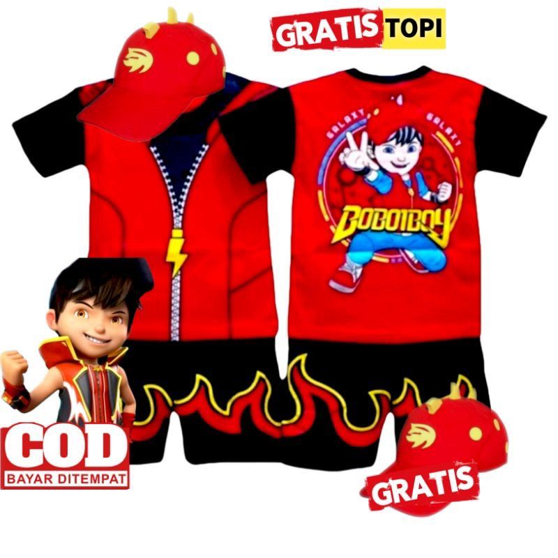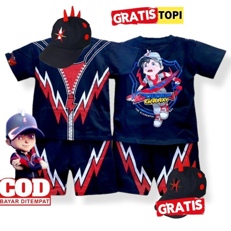 Setelan Anak Boboiboy Halilintar/Gempa/4Pi/Solar/Daun/Baju Anak Boboiboy Laki Laki/Kostum Anak Boboiboy/Bonus Topi Umur(