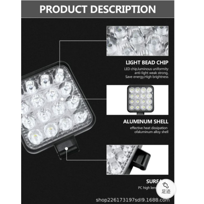 Lampu Tembak Sorot LED Worklight 16 Mata / 27W 12V&24V Kotak & Bulat/ Mobil & Motor