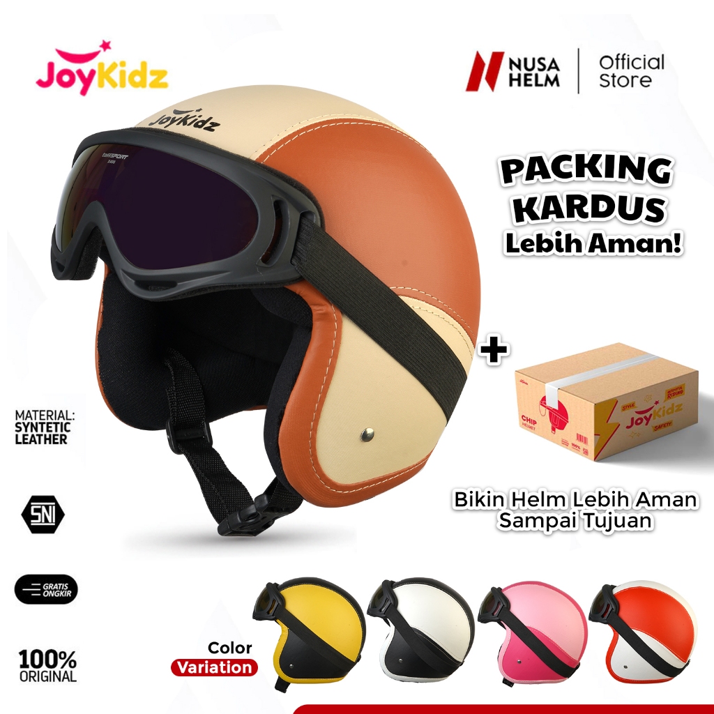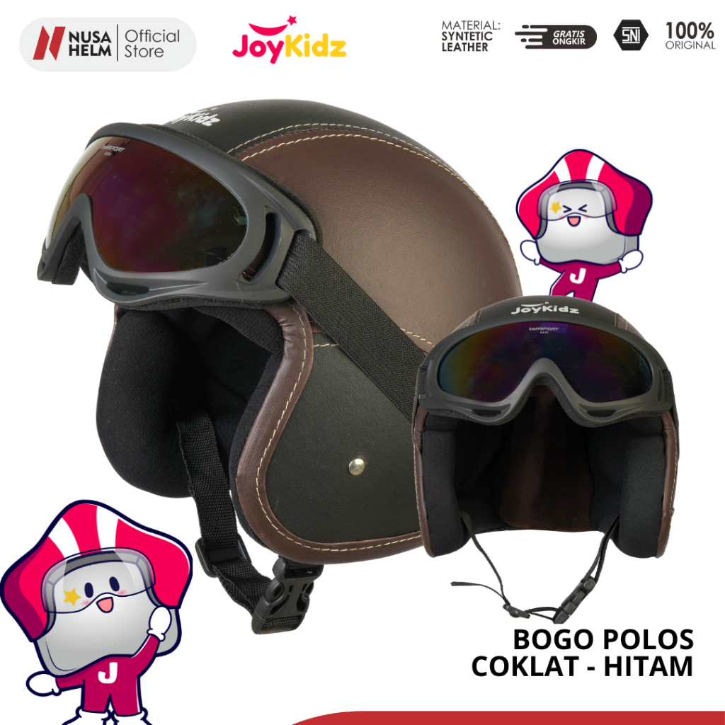 Helm Anak Bogo Polos Kacamata Usia 2-7 Tahun Kulit Premium Cewe Cowo Packing Kardus
