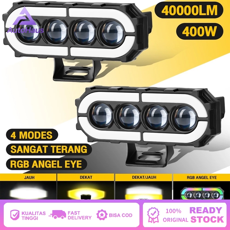 ⭐ & ⭐Lampu LED Tembak 4 Mata 400W 40000LM Super Terang Laser SQL Untuk Mobil Motor 2 Warna Putih Kuning