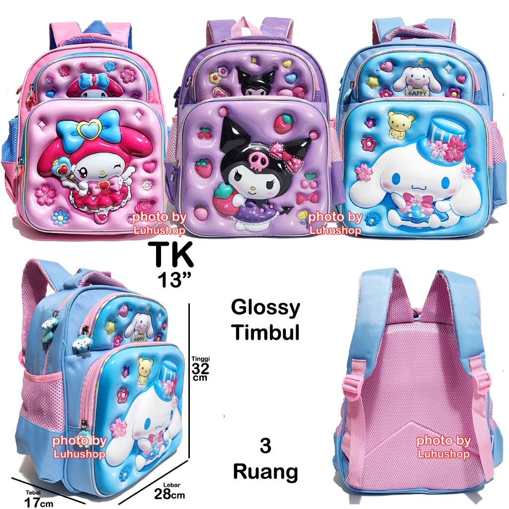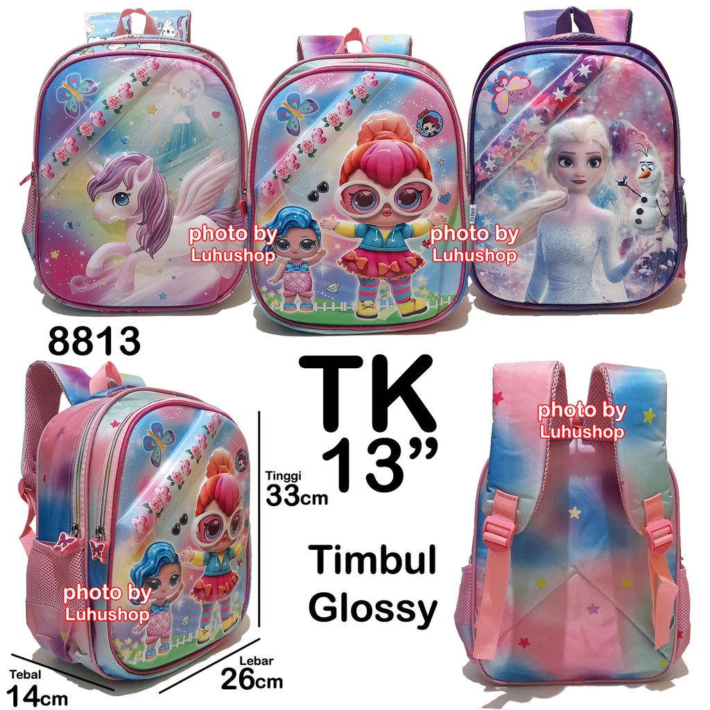 Tas Timbul Glossy Sd Tk Ransel Sekolah Cewe Tas Anak Perempuan Unicorn Frosen Owl Hantu Ice Cream Boba