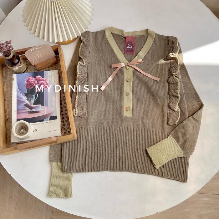YURE CRINKLE BLOUSE - ATASAN BLOUSE WANITA MOTIF RAJUT KOREAN STYLE T0P - KHAKI, ALL SIZE