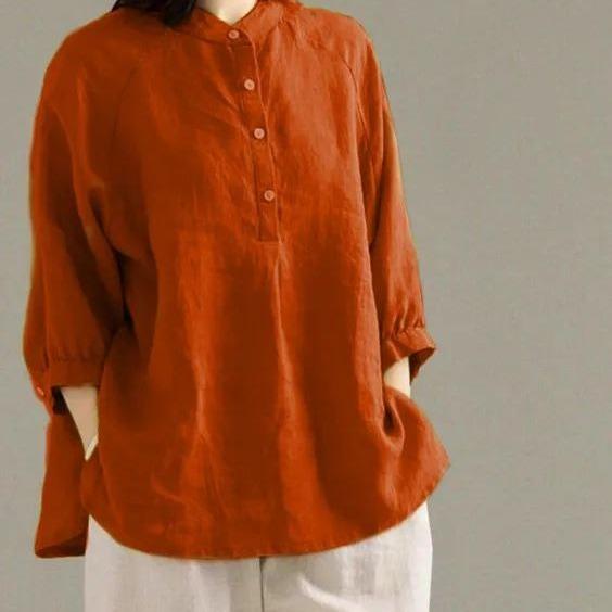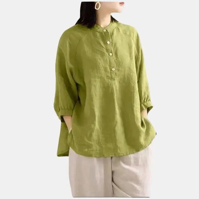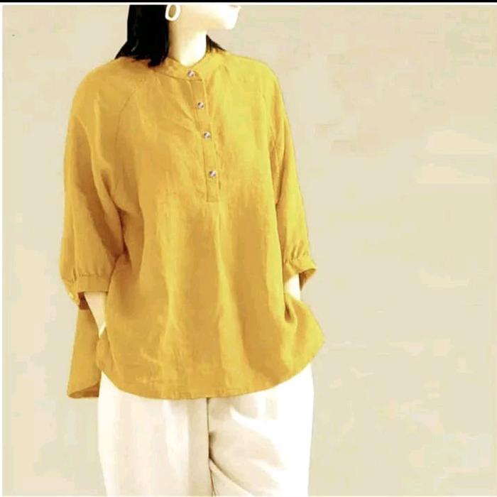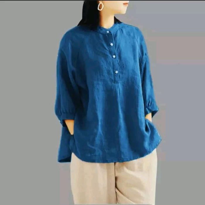 BLOUSE WANITA JUMBO KATUN LINEN RAMI KERAH SHANGHAI KEMEJA LENGAN 3/4 BAJU ATASAN LINEN OVERSIZE CASUAL SANTAI TERBARU