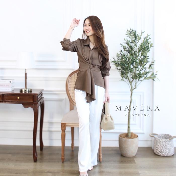 MAVERA - ALESSANDRA BLOUSE COTTON SILK KIMONO RUFFLE T0P MEWAH ELEGAN LEMBUT NYAMAN SIMPLE / ATASAN WANITA CASUAL - PEAR