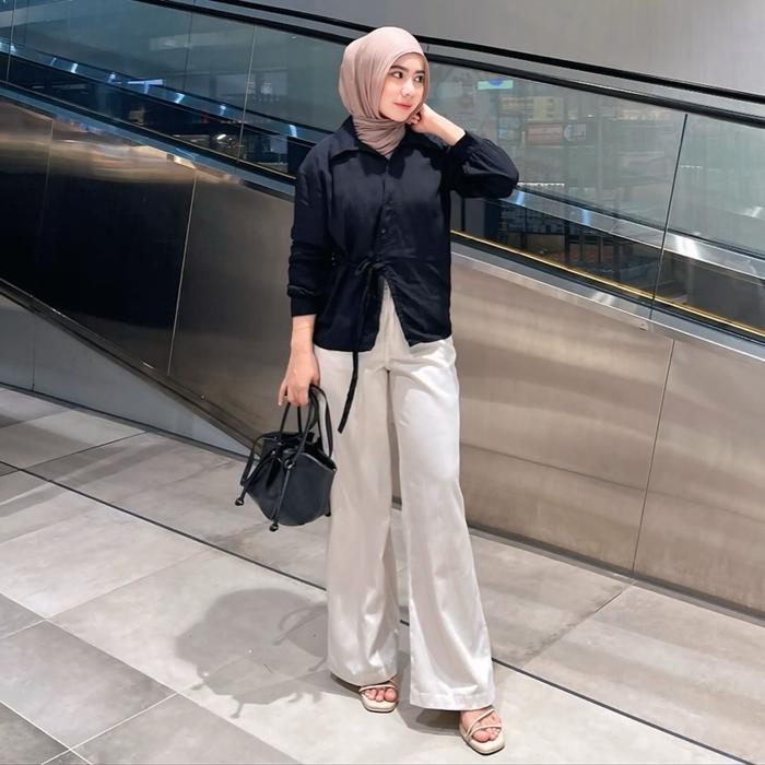 SELINA T0P BLOUSE KOREAN STYLE TALI DEPAN ATASAN WANITA FIT SLIM KANCING BASIC - SELINA IVORY