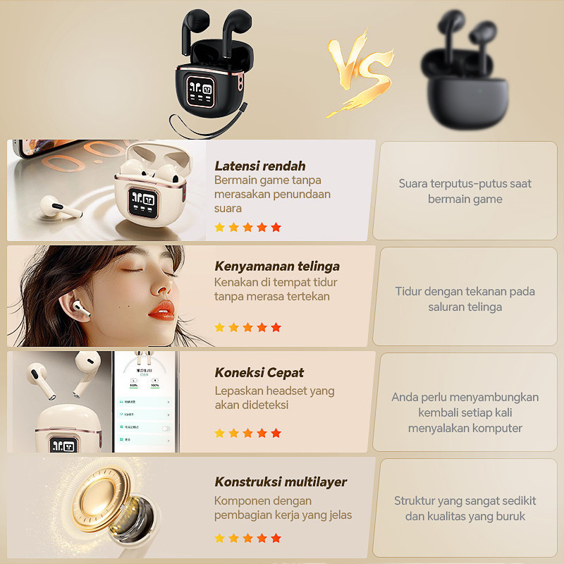 [Star] Manu J55 Earphone Bluetooth In-ear Earbud With Digital Display Gaming Headphone Kualitas Suara HD Audio Mini Head