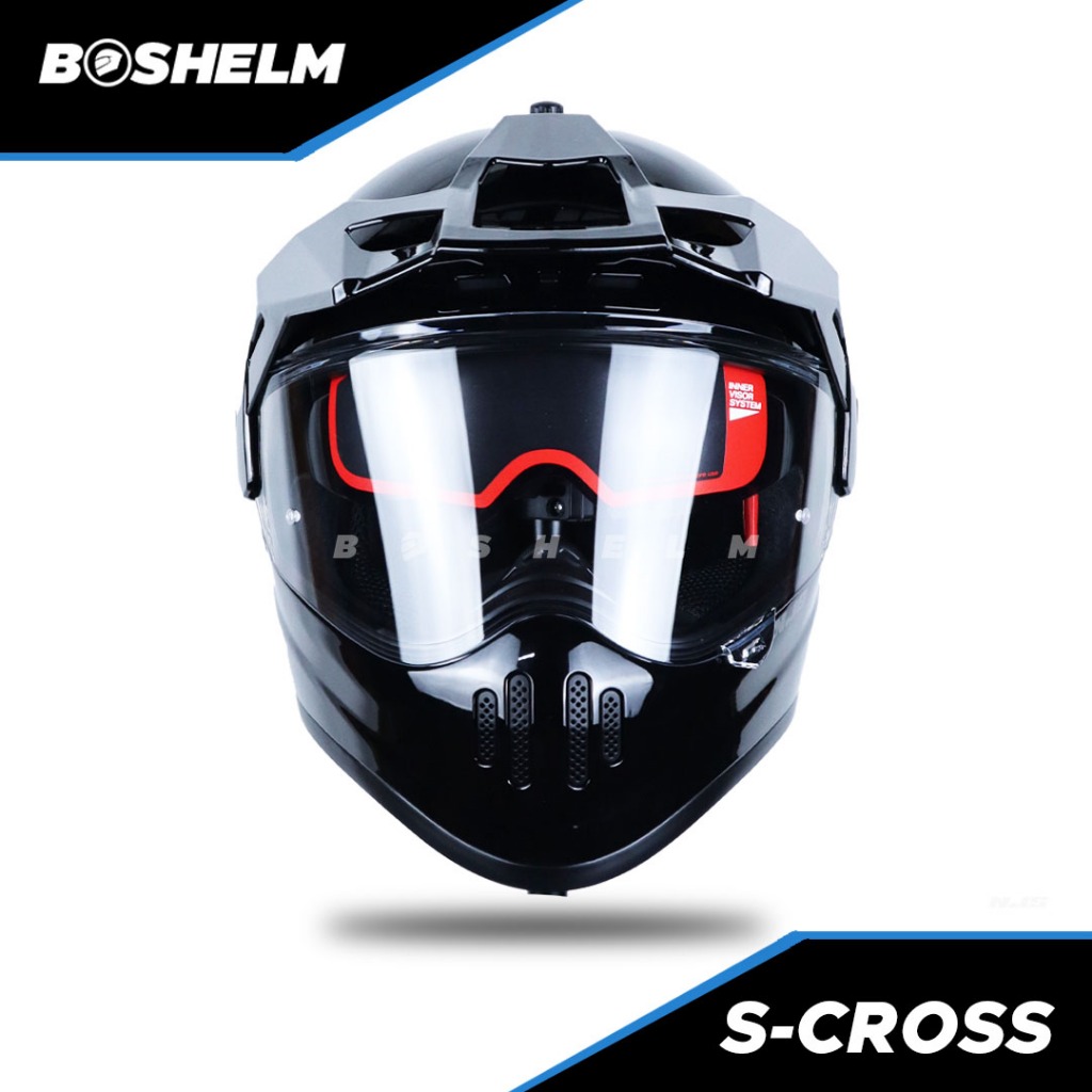 BOSHELM Helm NJS S-Cross Solid HITAM GLOSSY Helm Full Face SNI