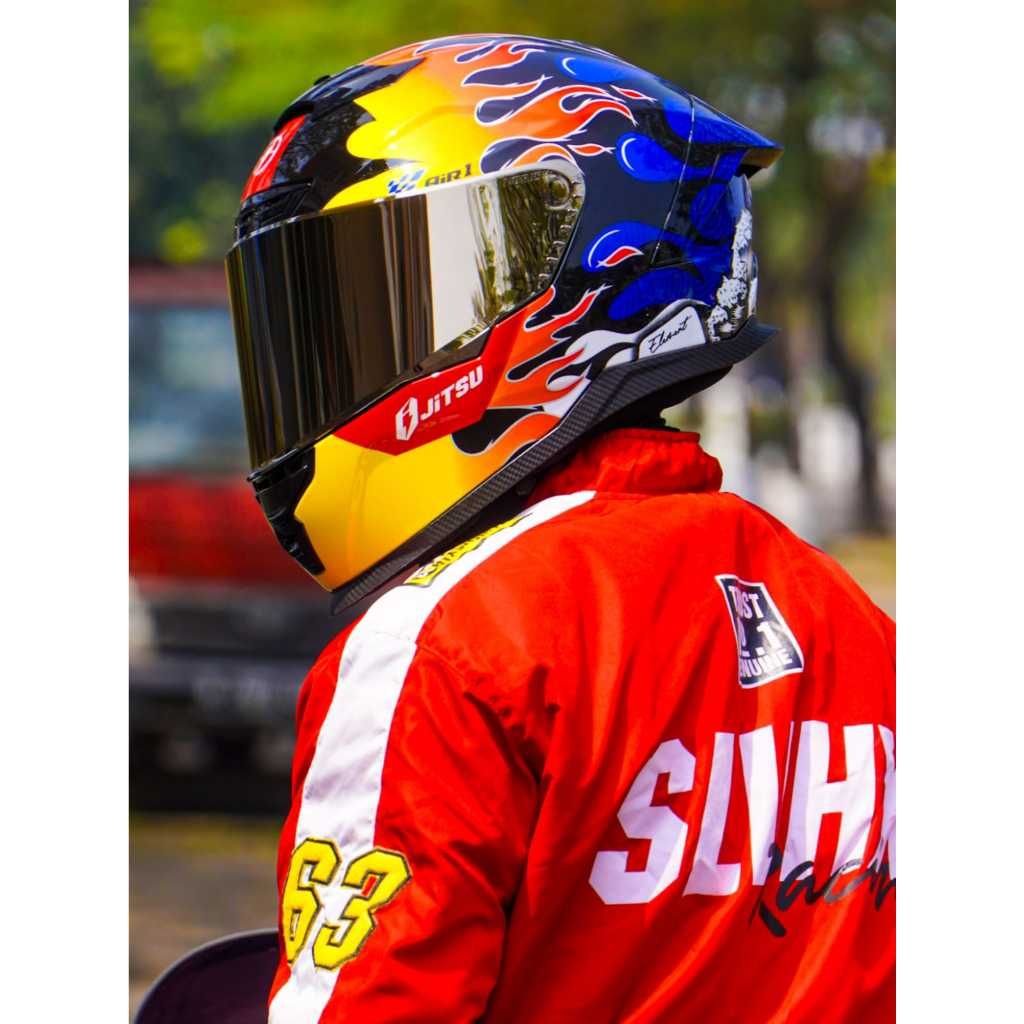 Full Face Helm Jitsu Air 1 Motif Carbon Visor Silver Terbaru