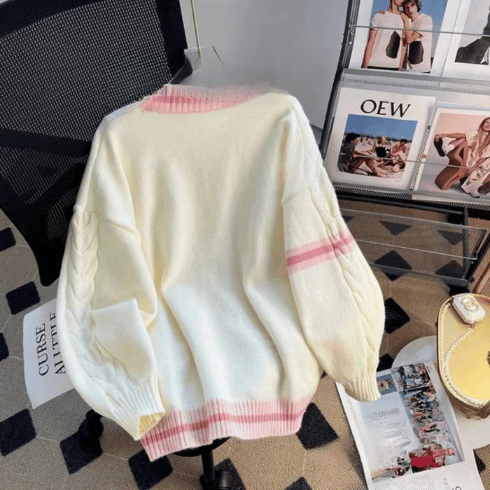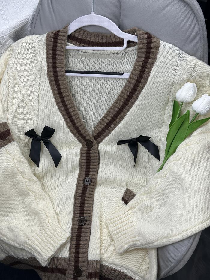 CARDIGAN RIBBON PITA COQUETTE ATASAN WANITA LENGAN PANJANG LONGSLEEVE BAJU OVERSIZE BESAR - PINK