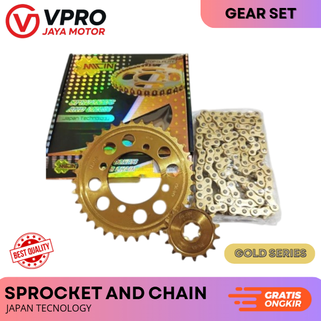 GEAR SET GIR SET kuningan mengkilap YAMAHA JUPITER Z GIR DEPAN 15 T GIR BELAKANG 36T RANTAI 428-104 RANTAI DAN GIR MOTOR JUPITER