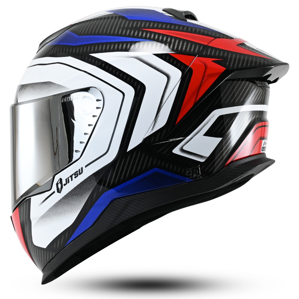 JITSU AIR 1 Helm Pria Keren 2025 Full Face Terbaru Motif Carbon Tech Flat Visor Silver