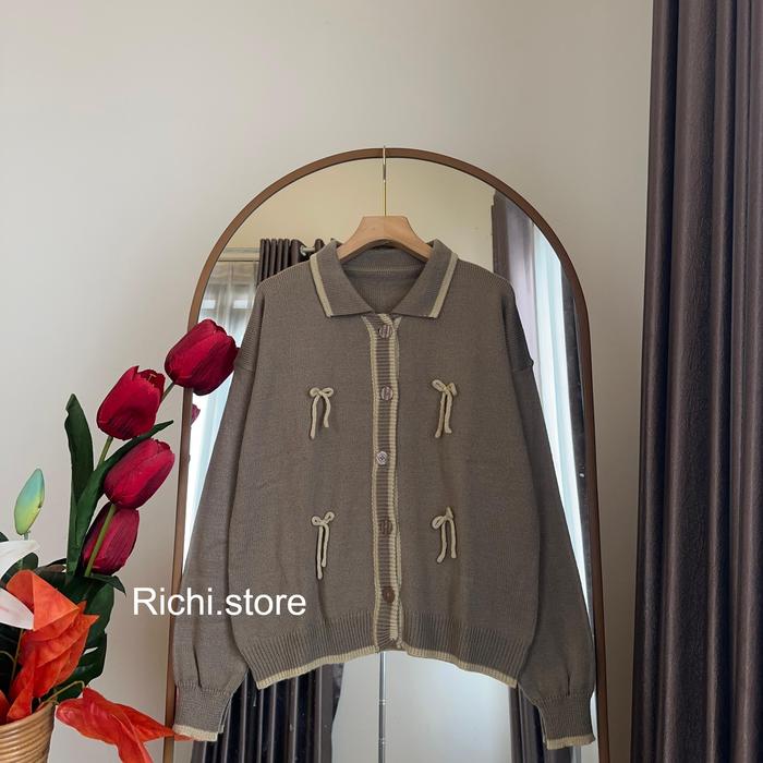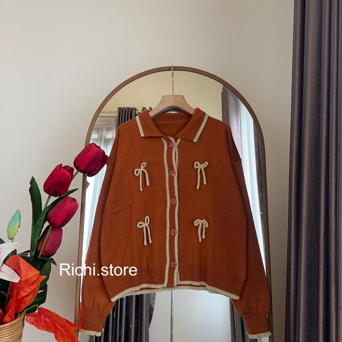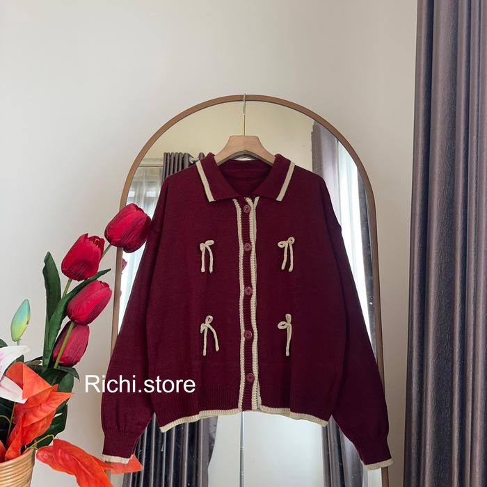REBECCA CARDIGAN KNITWEAR PITA RAJUT ATASAN WANITA KARDIGAN KANCING CASUAL - MAROON