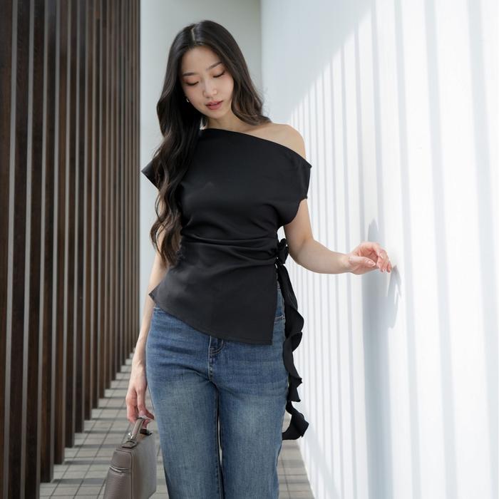 [TAVIA] FLORA T0P / ATASAN WANITA / BLOUSE WANITA - BLACK, S