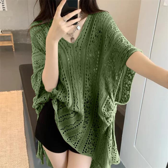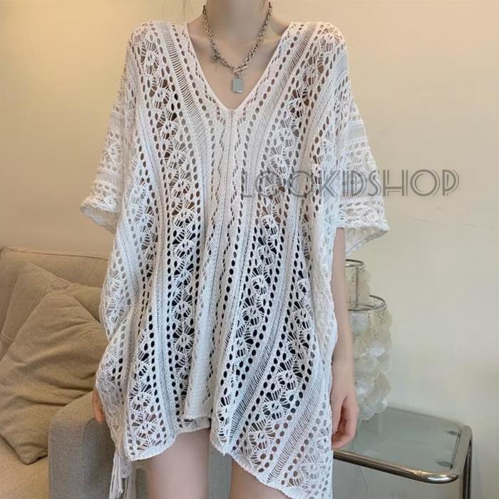 EMIOLA HOLLOW BLOUSE - ATASAN RAJUT PEREMPUAN WANITA TALI KNITWEAR PREMIUM - KHAKI
