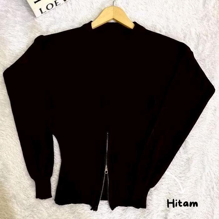 CALAA SWEATER RAJUT RESLETING ZIPER BAWAH ATASAN RAJUT WANITA KEKINIAN - COFFE, ALL SIZE