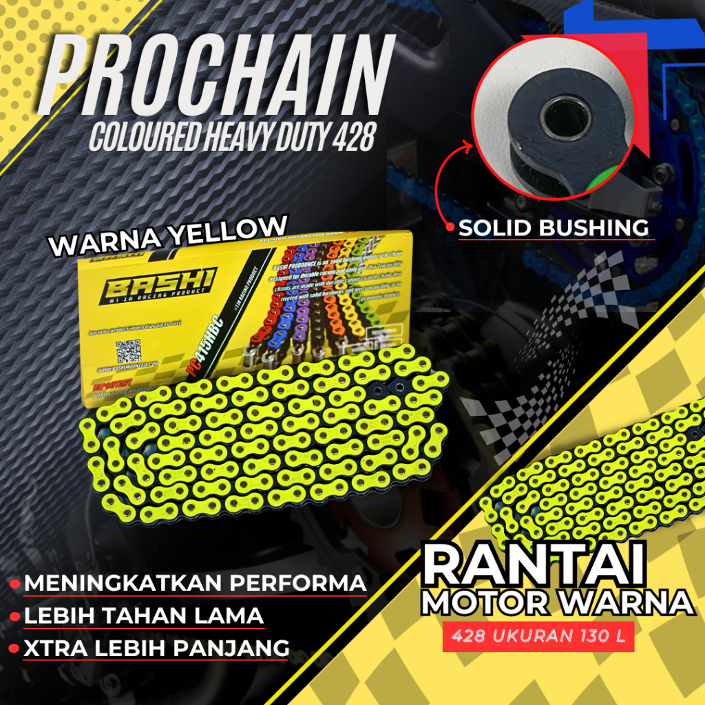 BASHI RANTAI MOTOR WARNA 130L HEAVY DUTY SOLID BUSHING BASHI PROCHAIN COLOURED 415H 428H 520H