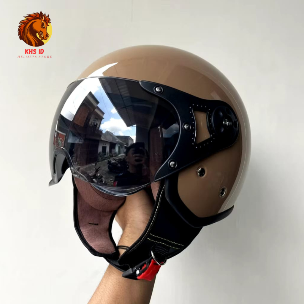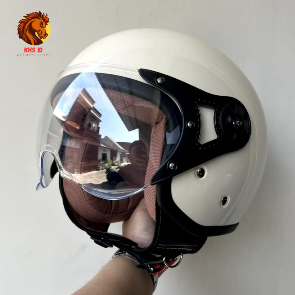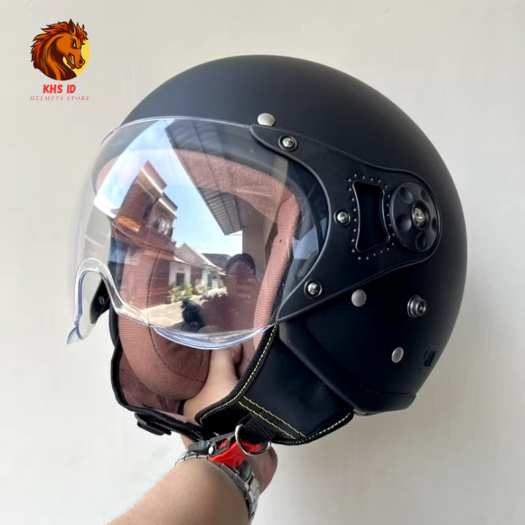 Helm Bogo Retro Pilot Bogo Hijab Original SNI bahan Premium Kaca Open Face Bening