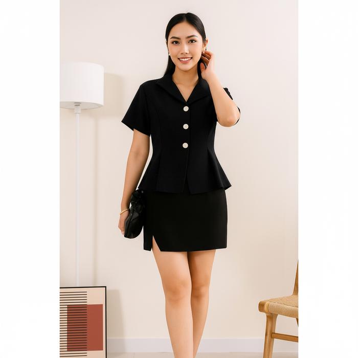 KARLA T0P WANITA LENGAN PENDEK SEMI WOOL MODEL KASUAL BLOUSE BLAZER KEKINIAN WARNA BROWN MAROON COKSU HITAM CREAM - BROW
