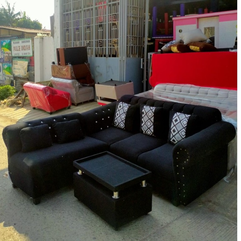 Sofa L Putus Kancing / Sofa L Minimalis / Sofa L Santai Bahan Beludru/ Sofa Letter L