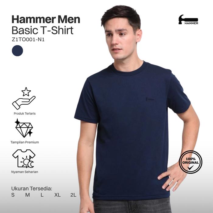HAMMER MEN BASIC T-SHIRT Z1TO001-N1 | KAOS PRIA LENGAN PENDEK NAVY - M