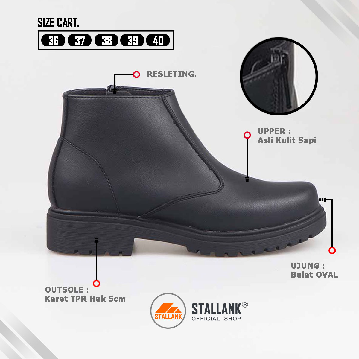 Stallank || Sepatu Boot Pdh Wanita Asli Kulit