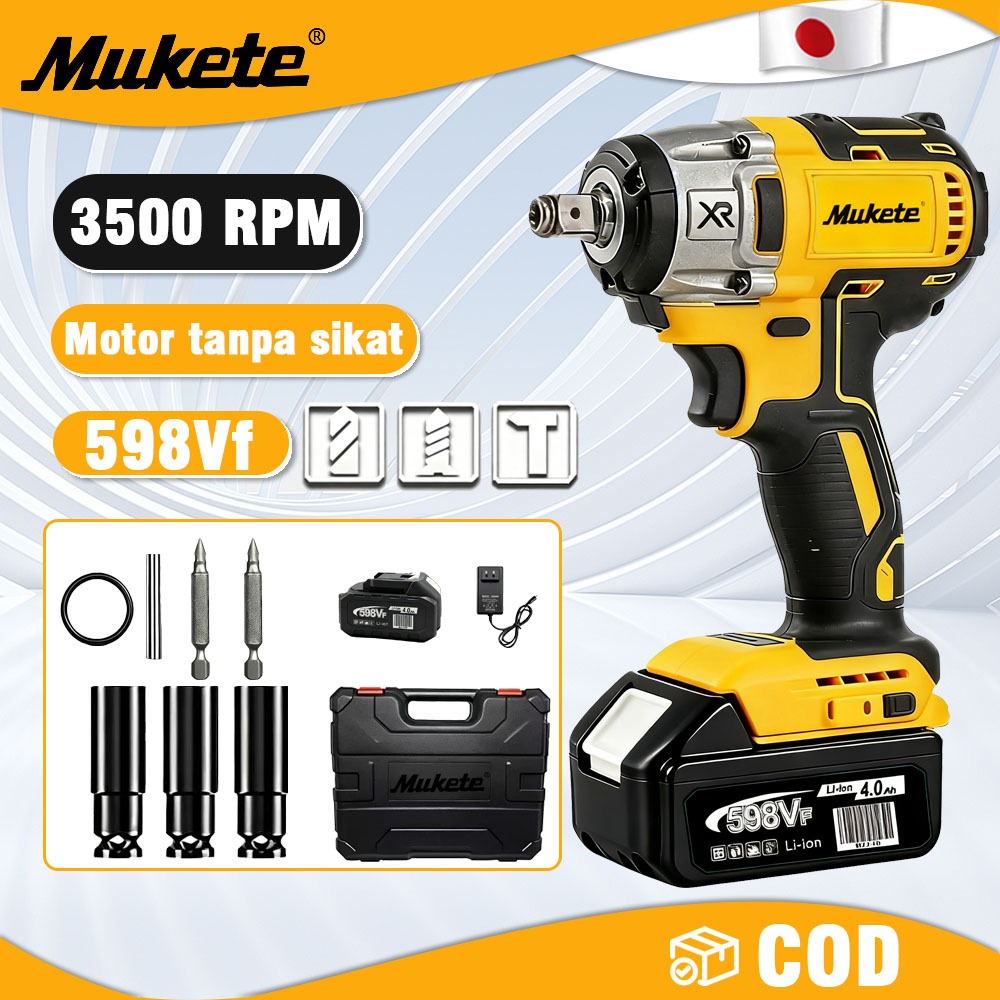 350Rpm Impact Baterai 700N.M Impact Wrench Impact Wrench Brushless 598V Impek Baterai Kunci Impact