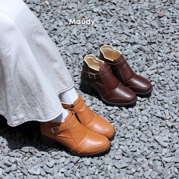 One Love Maudy 5 Cm - Sepatu Boots Wanita Heels Ankle Casual Formal Korean Style Hak Tinggi 5 Cm Kulit Sintetis Anti Sli