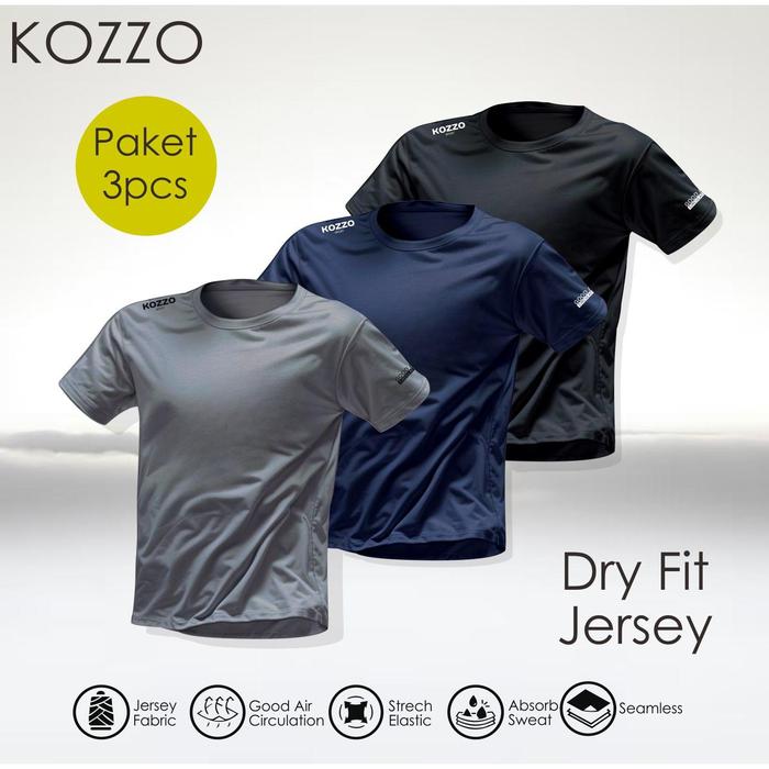 BAJU OLAHRAGA 3 IN 1 PRIA T-SHIRT LARI KAOS DRY FIT QUICKDRY BREATHABLE MILANO SPORT GYM JERSEY ANTIBAN - KOZZO ABU NAV