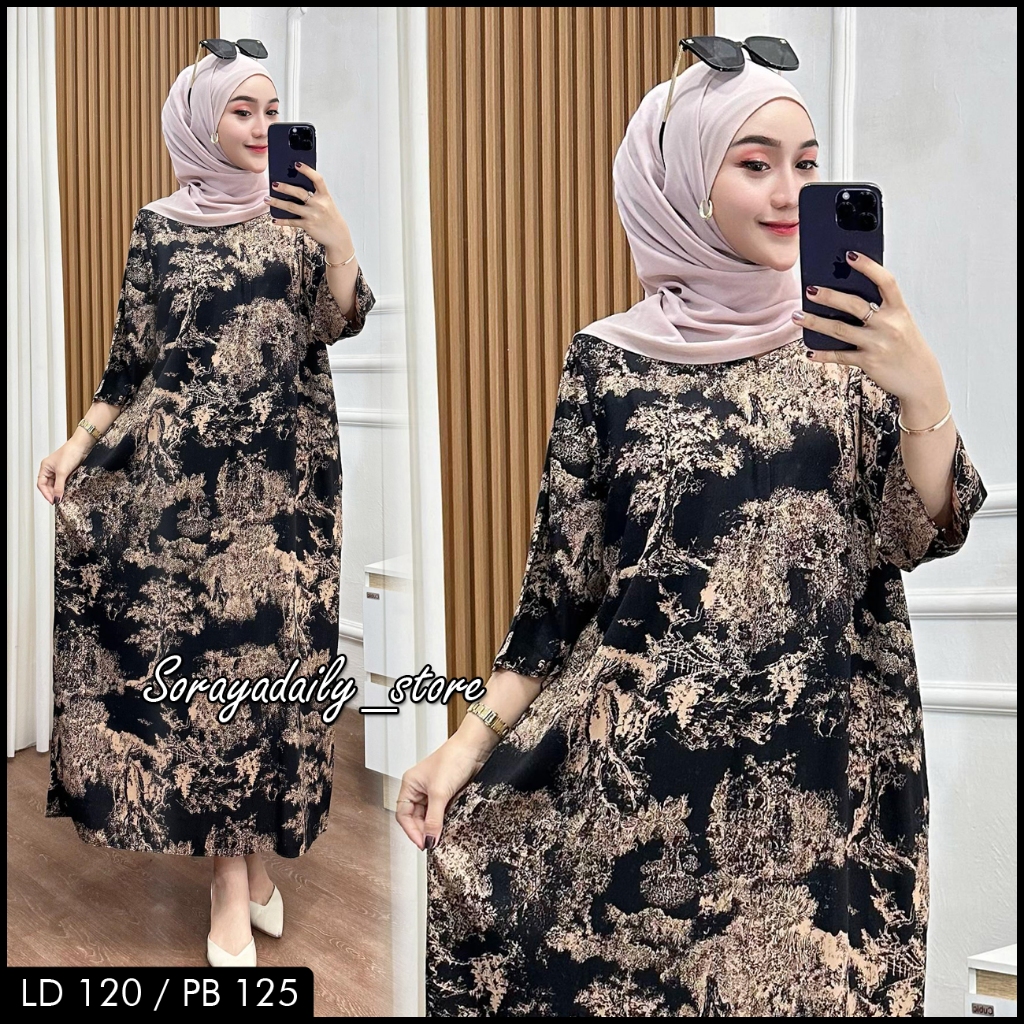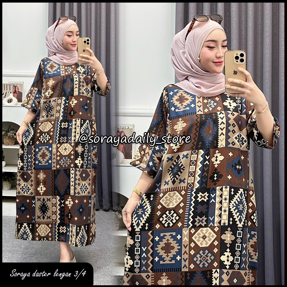 Dress Lengan 3/4 Daster Rayon Busui Jumbo | Dress Motif Wanita Kekinian