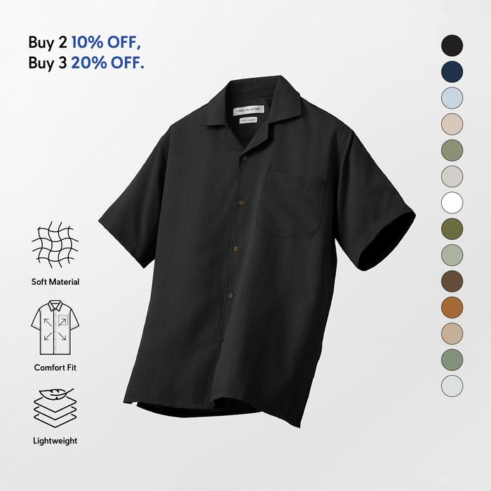 [BUNDLING] TENUE KEMEJA POLOS CAMP COLLAR LENGAN PENDEK - CREMA - BLACK, L