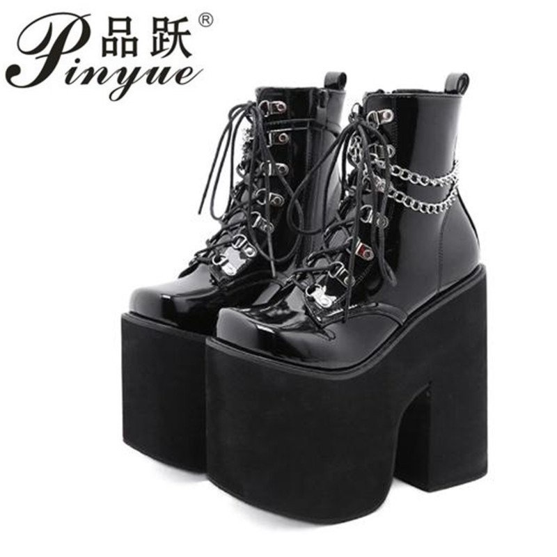 Height 17Cm Nightclub Stage Ankle Booties Women Extreme Thick Platform Heel Gothic Punk Shoes Girls