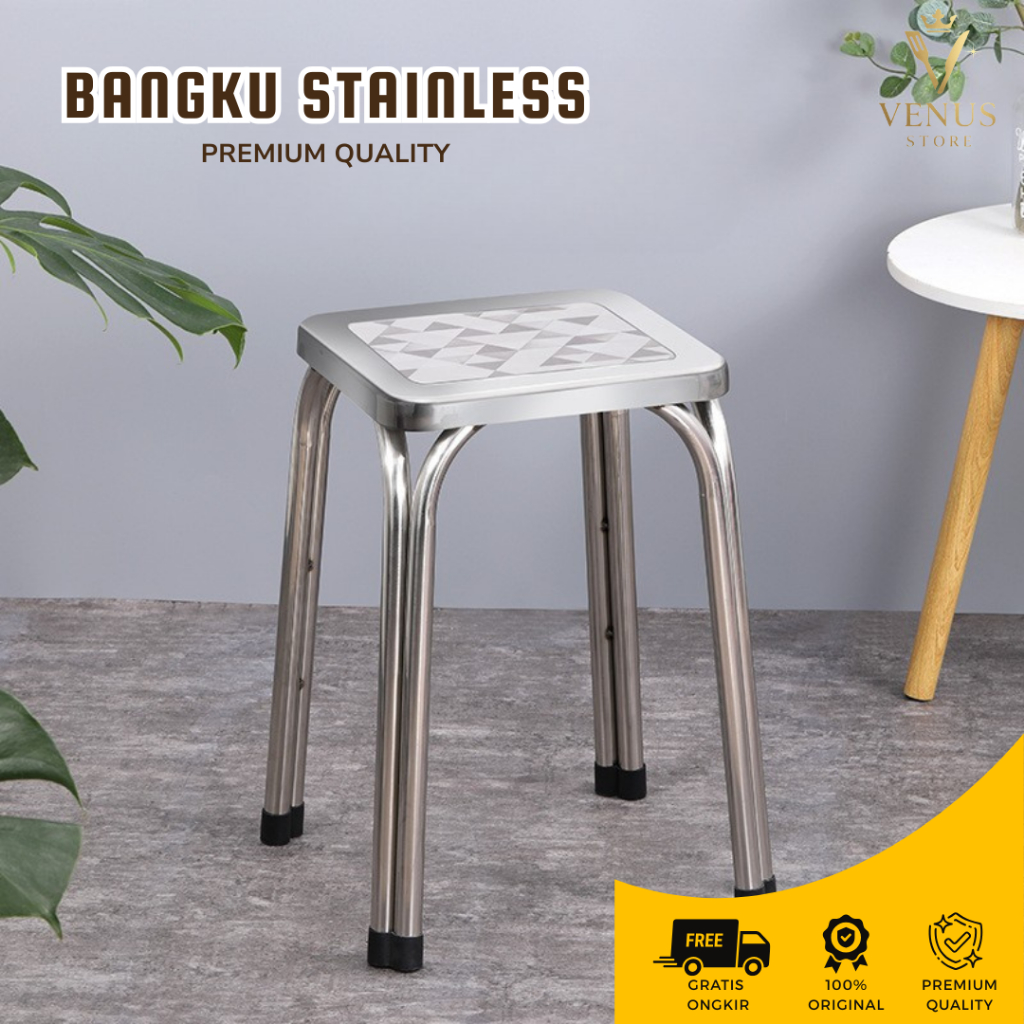Venus Store - Kursi Persegi Bakso Stainless Steel / Bangku Bakso Susun Bangku Bar & Kafe Premium