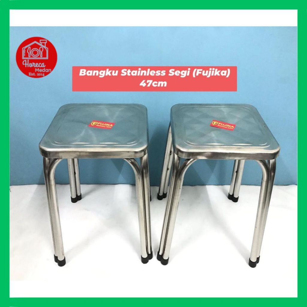 Kursi Bangku Stainless Steel Segi / Bulat Tinggi 47 Cm / Bangku Bakso / Bangku Cafe