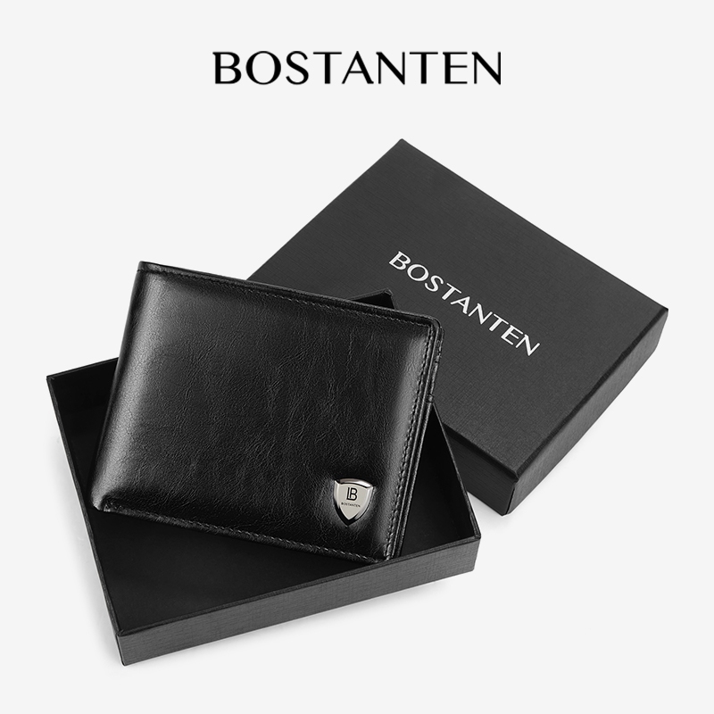 Bostanten Dompet Pria Koin Ritsleting Kulit Pu Tiga Kali Lipat Hitam/Coklat/Kopi